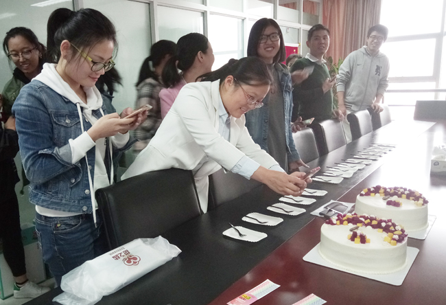 面對高顏值蛋糕,小伙伴們紛紛拿出手機拍照。