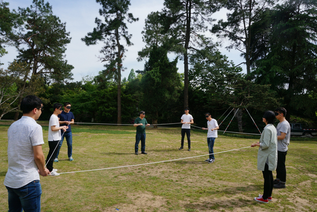 松鼠和大樹(shù)考查的是大家的應(yīng)變能力。有的同事一聽(tīng)到口令就迅速行動(dòng)起來(lái),有的稍作猶豫就被別人搶了位置。心動(dòng)不如行動(dòng)哦,童鞋。